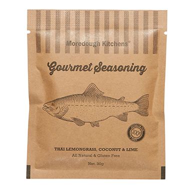 Lemongrass, coconut and lime are the characteristics of this seasoning, making it the perfect partner for fish and Thai flavoured foods. This Moredough Kitchen gourmet single serve seasoning is the perfect, versatile additional flavour burst for meat and fish on the BBQ or slow cooked in the oven.