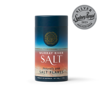 Murray River Gourmet Salt Flakes are produced from ancient saline waters sourced from underground aquifers in Australia’s Murray Darling Basin region. By intercepting these underground aquifers, which would otherwise enter the Murray River, we are contributing to the effort in combatting Australia’s inland salinity problem. The ancient saline water contains naturally occurring minerals such as magnesium, calcium, potassium and iodine which are beneficial in our diet. These minerals are attributed to creating a stunning pink hued salt flake that is subtle in flavour and delicate in texture. This cannister is a perfect gift to take to your next dinner party instead of flowers.